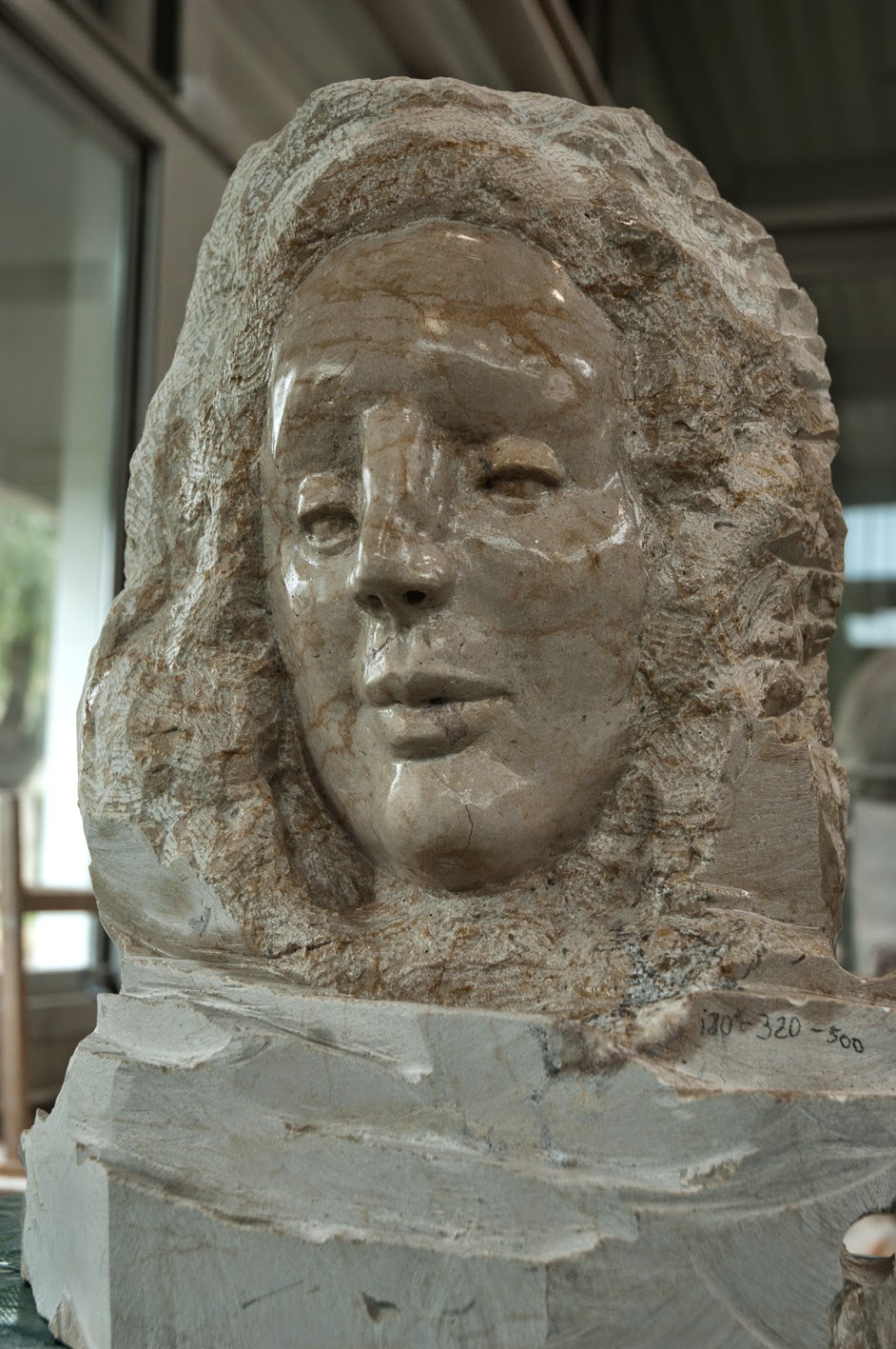 El busto de SANTA CECLINA ha ido evolucionando hasta el estadio de intervención en que ahora se encuentra. Se trata de un estadio intermedio de pulido con lija de agua que por último dará paso a un nuevo y definitivo pulido con herramienta mecánica.